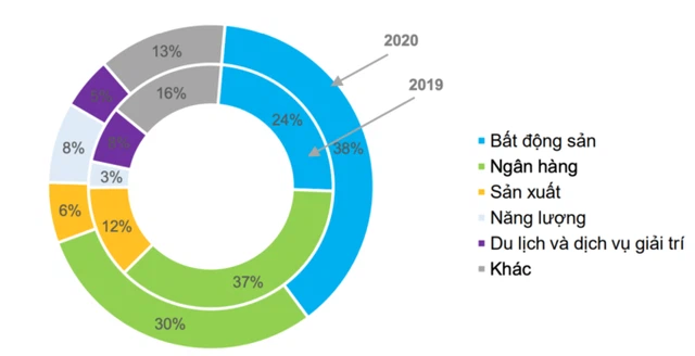 Bên cạnh đó, đầu tư trái phiếu doanh nghiệp nhằm mục Ä‘Ãch xây dá»±ng, kinh doanh BÄS vẫn chiếm tá»· trá»ng cao trong tổng đầu tư trái phiếu doanh nghiệp. Má»™t số ngân hà ng thương mại có số dư đầu tư trái phiếu doanh nghiệp tăng lá»›n so vá»›i năm 2019, trong đó, mức tăng thêm táºp trung chá»§ yếu và o lÄ©nh vá»±c xây dá»±ng và kinh doanh BÄS.